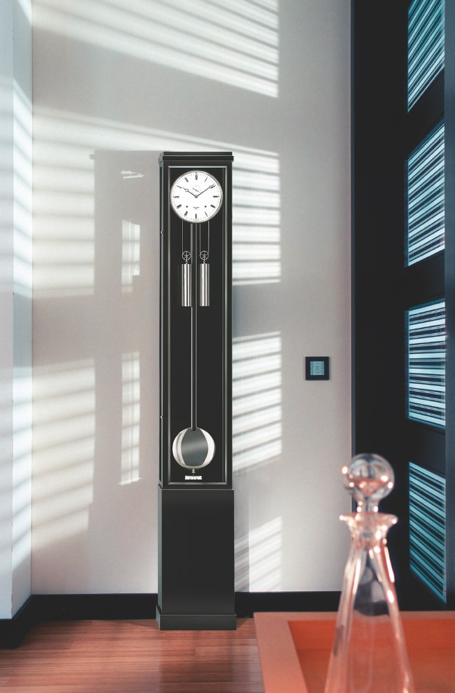 Auf Wunsch lässt sich das Schlagwerk jederzeit von außen repetieren oder abstellen. Mit einer Gesamthöhe von 185 cm stellt sich die Standuhr Excelsia von Erwin Sattler unübersehbar im Raum dar, andererseits ist sie mit ihrem schlanken, schleiflackierten Gehäuse aber so dezent, dass sie sich mit ihrer einfachen und doch ganz besonderen Optik mühelos in jedes Ambiente einfügt.