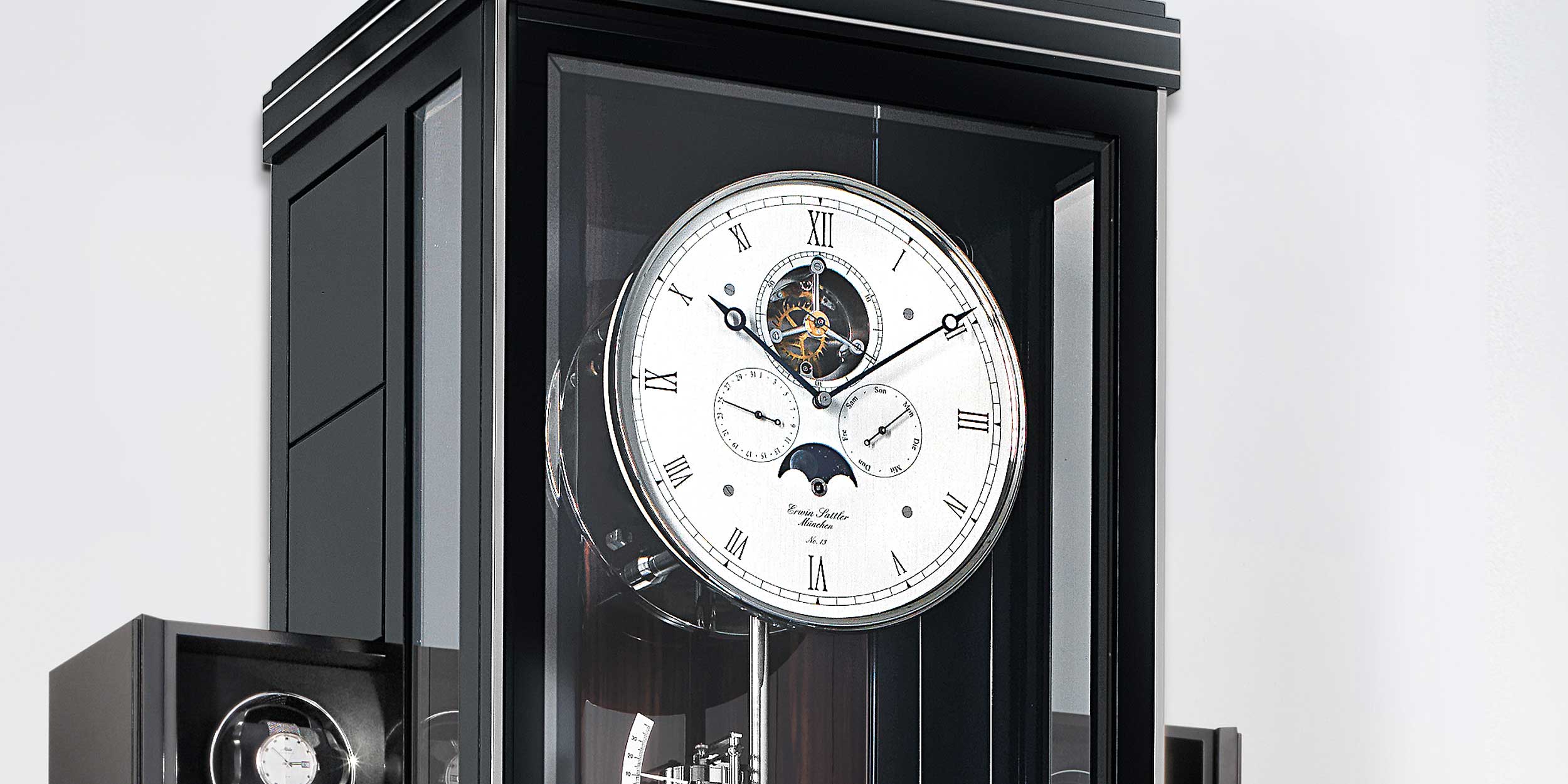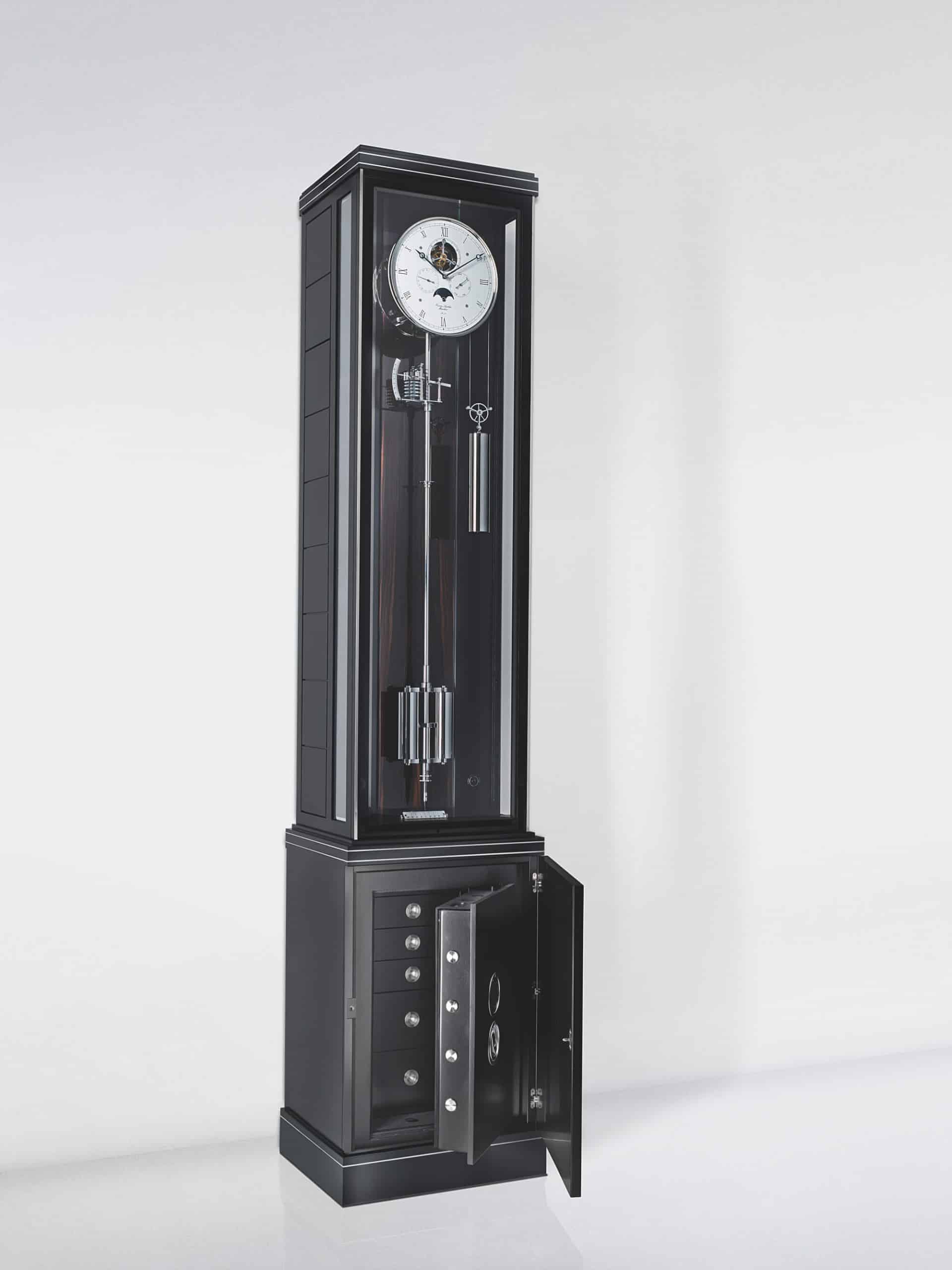 SICHER VERWAHRTE KOSTBARKEITEN VERSTECKEN SICH IN EINER FASZINIERENDEN UND IMPOSANTEN PRÄZISIONSPENDELUHR VON ERWIN SATTLER