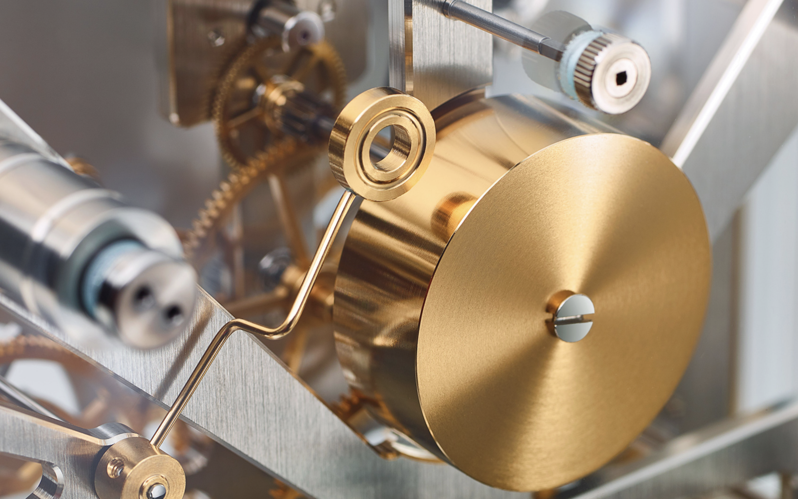 Auf Basis eines in der Manufaktur entwickelten und vergoldeten Räderwerks, verwirklichten die Uhrmacher ihre Vision eines zuverlässigen, wartungsarmen und langlebigen Tischuhrwerks. Ein mechanischer Federkraftausgleich durch Schnecke und Stahlseil schafft Abhilfe, wenn die in einer Zugfeder gespeicherte Antriebskraft über die Gangdauer von 15 Tagen kontinuierlich abnimmt. Ein aufwändiger Prozess, der die Tischuhr Opera auch technisch zu einem besonders wertvollen Zeitmesser macht. Eine derart ausgestattete Uhr genügt allen Ansprüchen an das überlieferte Uhrmacherhandwerk. Sie ist klassisch und dezent, nicht aufdringlich und doch der Höhepunkt im Raum.