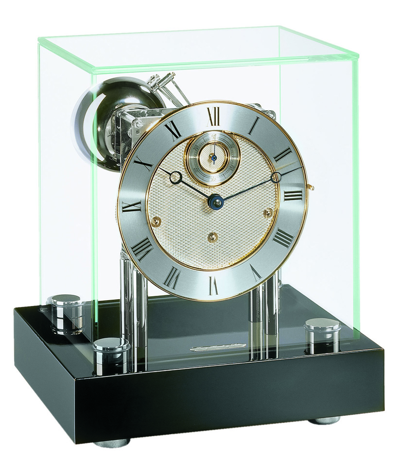 Das Modell 22801-740352 von Hermle vereint schlichte Eleganz mit höchster Präzision und Qualität. Die kubische Form wurde auf das Wesentliche reduziert, wodurch ein zeitloser Klassiker entstanden ist. Der Sockel besticht durch ein edles schwarzes Piano-Finish und ruht auf filigranen Werkpfeilern, die das polierte Hermle-Westminster-Schlagwerk aus Nickel tragen.