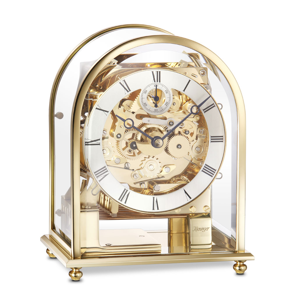 Das kleinste Tischuhr-Modell von Kieninger verfügt über drei Melodien (Westminster, St. Michael und Whittington) auf einem 8-Stabgong, ein Sicherheitsaufzugsgesperr, eine Sekundenanzeige und eine automatische Nachtabschaltung zwischen 22.00 und 7.15 Uhr.