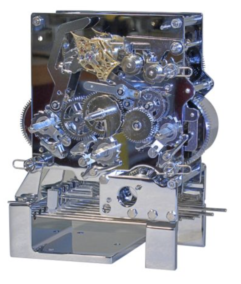 Das Uhrwerk vom Kaliber J0256 ist ein 4/4-Federzugumschaltwerk mit Echapement (9 Steine), verfügt über Frontaufzug, drei Melodien (Westminster, St. Michael & Whittington) auf einem 8-Stabgong, eine Sekundenanzeige sowie eine automatische Nachtabschaltung zwischen 22.00 und 7.15 Uhr.