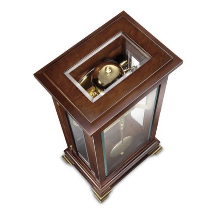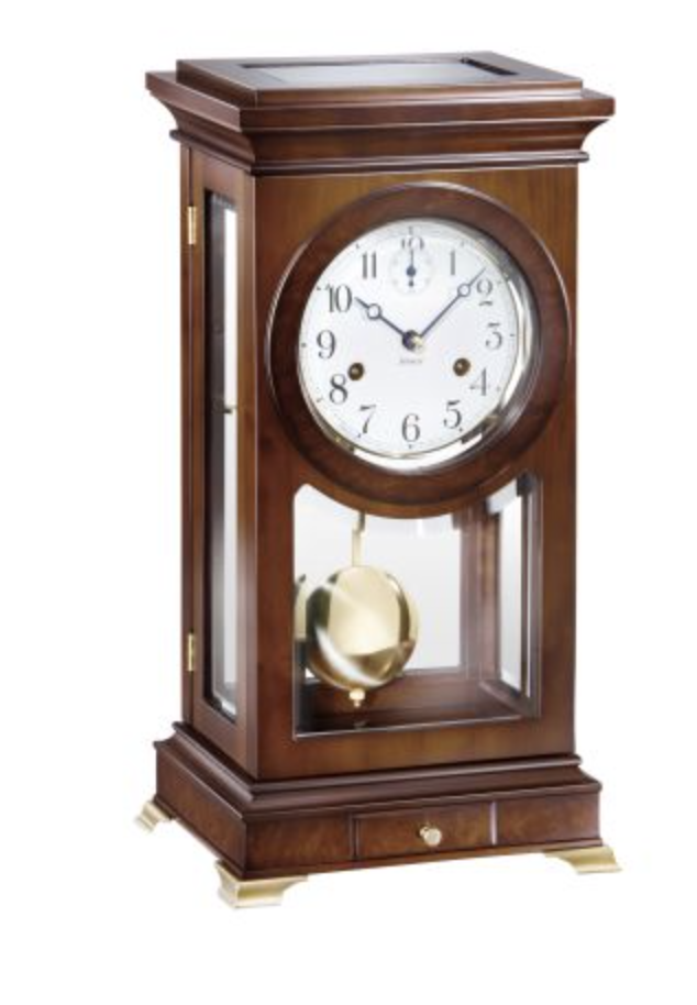 Die schlanke Tischuhr 1276-22-01 des Herstellers Kieninger präsentiert sich in einem schlichten, aber eleganten Design. Das sichtbare Pendel verleiht der Uhr eine besondere Note. Das Gehäuse ist in einem dunklen Nussbaumton gehalten, während das Schlüsselschubfach im Sockel und die sechs facettierten Kristallgläser für einen harmonischen Kontrast sorgen. Das Zifferblatt aus echtem Emaille ist mit arabischen Zahlen und einer Sekundenanzeige versehen.