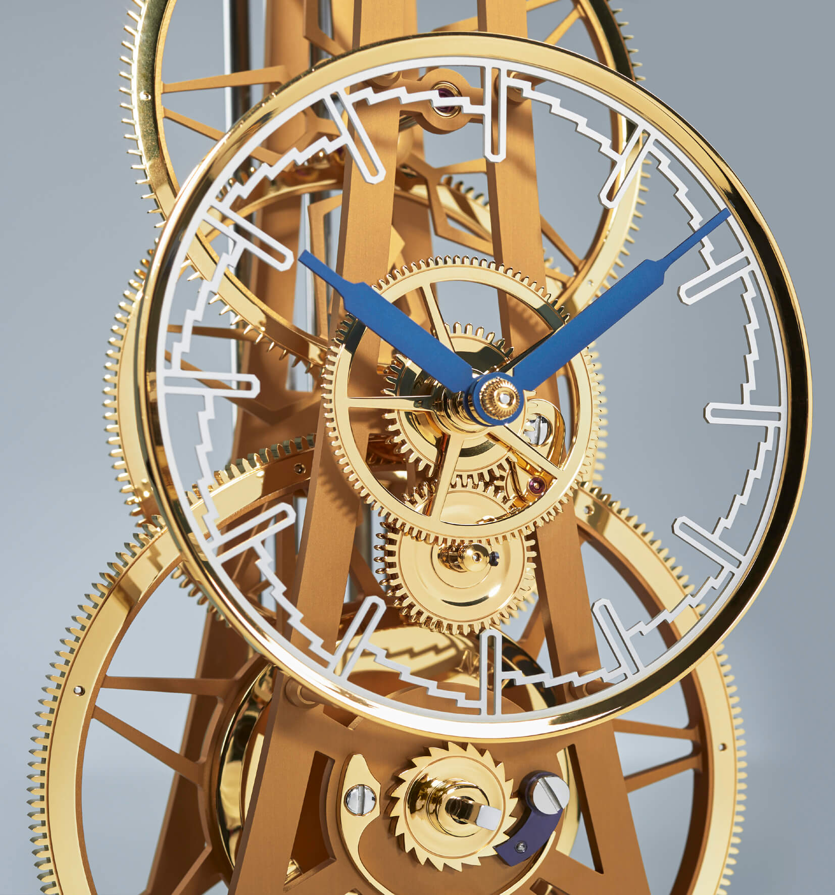 - Skelettierter Ziffernring mit spezieller Minutenanzeige über Stufen