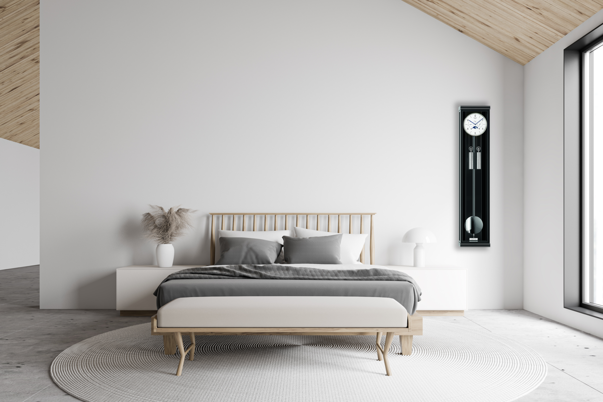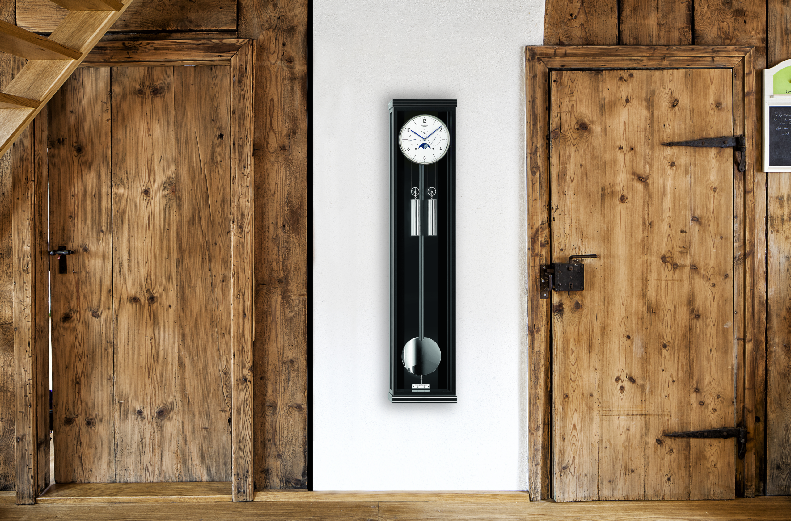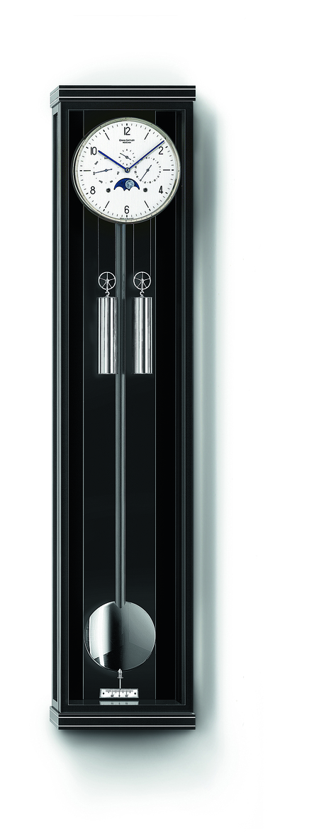 Auf Nachfrage von Uhrenliebhabern vervollständigt ein Modell die Kollektion der Erwin Sattler Manufaktur, das zwei Classica Serien miteinander vereint und damit die Entscheidung zwischen Kalenderfunktion mit Mondphasenanzeige und einem erklingenden Schlagwerk hinfällig macht: die Wanduhr Classica KS 130 M. Sie besitzt Metallintarsien in Sims und Sockel.