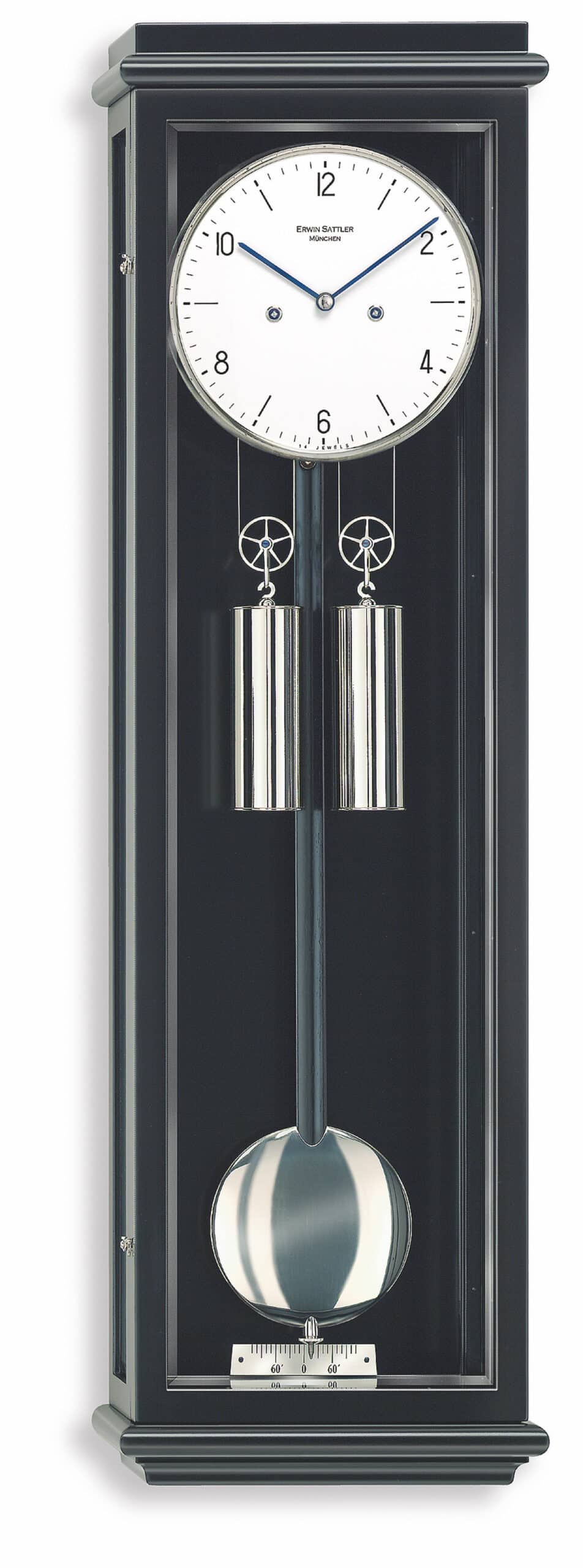 Zu jeder halben Stunde macht sich die 70 Zentimeter große Wanduhr Classica S 70 (Schwarz) von Erwin Sattler mit wundervoll harmonischen Klängen bemerkbar. Jedoch lässt sie ihre Besitzer nicht darauf warten. Dank der möglichen Repetition kann das Schlagwerk bis zur fünfzigsten Minute manuell ausgelöst werden. Damit wird das Schlagwerk ausgelöst und die vergangene Stunde schlägt noch einmal. Für ein ruhiges Wohnumfeld lässt es sich ebenso ganz abstellen.
