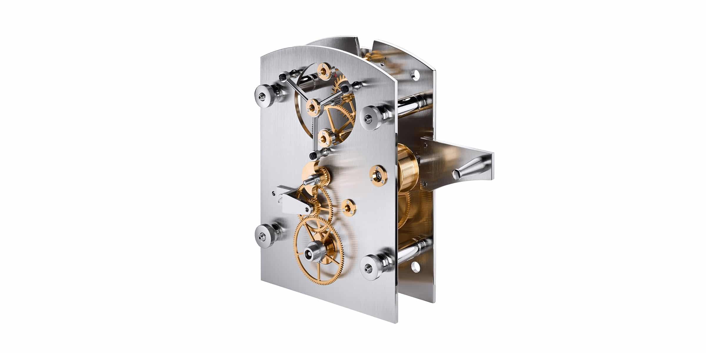 Einen Blick auf einige ihrer faszinierenden Geheimnisse erlaubt die Wanduhr Classica Secunda 1985 von Erwin Sattler durch drei facettierte Glasscheiben. Eine zusätzliche Scheibe im Dach ermöglicht den Lichteinfall oder die Beleuchtung des Uhrwerks von oben. Ihre Platinen, Werkpfeiler, Ankerbrücken und Kloben, Zahnräder, Umlenkwalzen und Chatons werden in der Manufaktur in Kleinserien gefräst und gedreht. Viele Bauteile werden von Hand nachbearbeitet und durch Vergolden veredelt. Die Aufziehkurbel, Feinreguliergewichte und weitere Zubehörteile verstecken sich in einem Fach im Boden des Gehäuses.