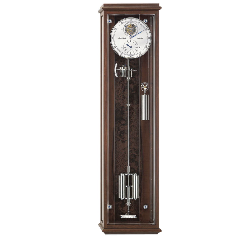 Mit einer Ganggenauigkeit von ca. ein bis zwei Sekunden pro Monat und dem 30-Tage-Uhrwerk bietet die Wanduhr Classica Secunda 1995 (Nußbaum) von Erwin Sattler auch technische Höchstleistung. Die Graham-Hemmung mit Steinpaletten bürgt für eine gleichmäßige Übertragung der Energie auf das Pendel. Vergoldete Räder, Wellen aus schwedischem Spezial-Stahl, fünf Kugellager und elf Rubinlochsteine in zwei Werkplatinen aus vier Millimeter starkem Hartmessing erhöhen Wirkungsgrad und Dauerhaftigkeit dieser „Uhr für Generationen“.