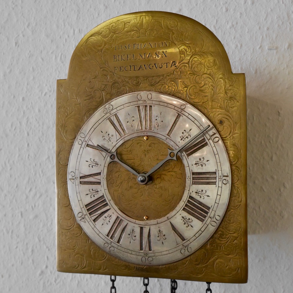 - Uhrwerk: 8-Tage Kettenzugwerk, Rundgong zur halben und vollen Stunde, Schlagabstellung