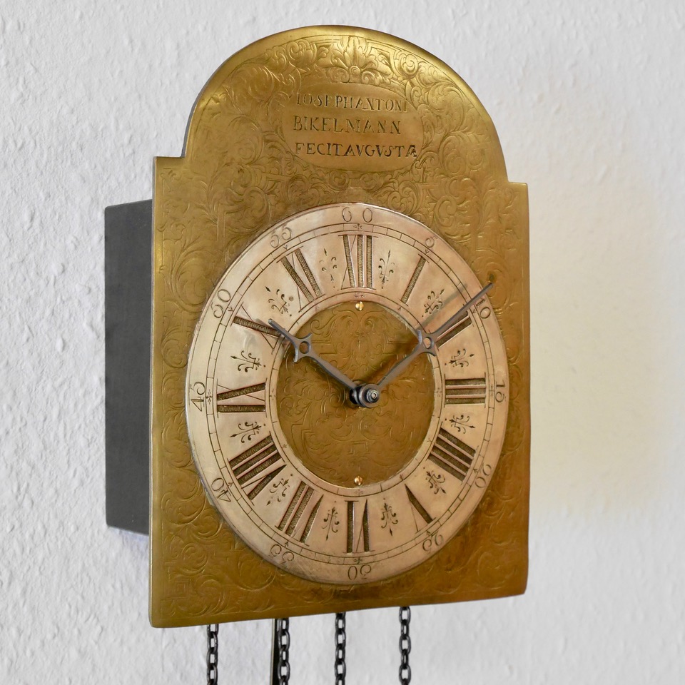 Das „AN“ steht bei der Schilderuhr 1141 für authentisch gealterte Komponenten. Dieses Modell von Helmut Mayr wird ausschließlich in dieser Ausführung lieferbar sein, die gealterten Komponenten sind auf Wunsch zukünftig aber auch für ausgesuchte WU-Modelle auf Wunsch denkbar.