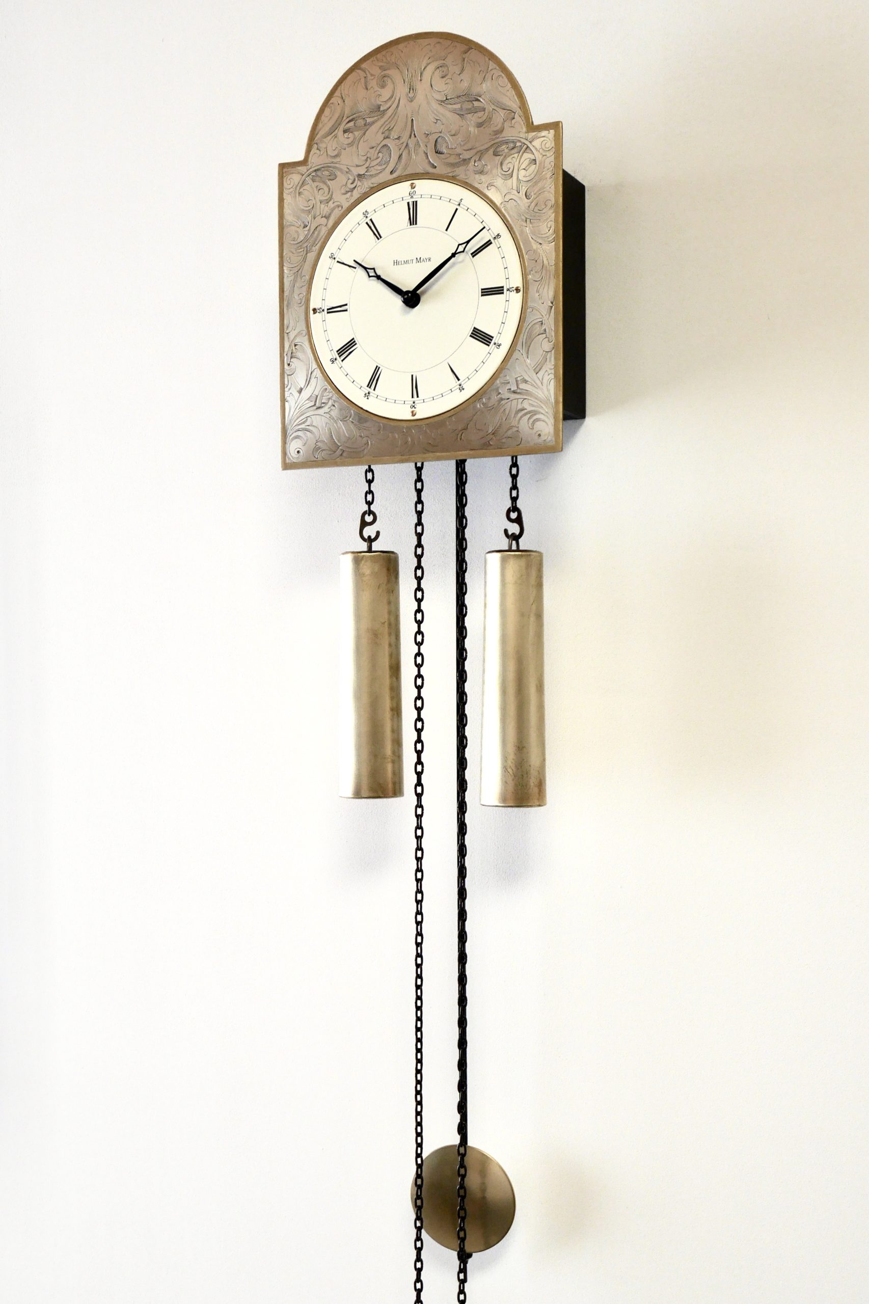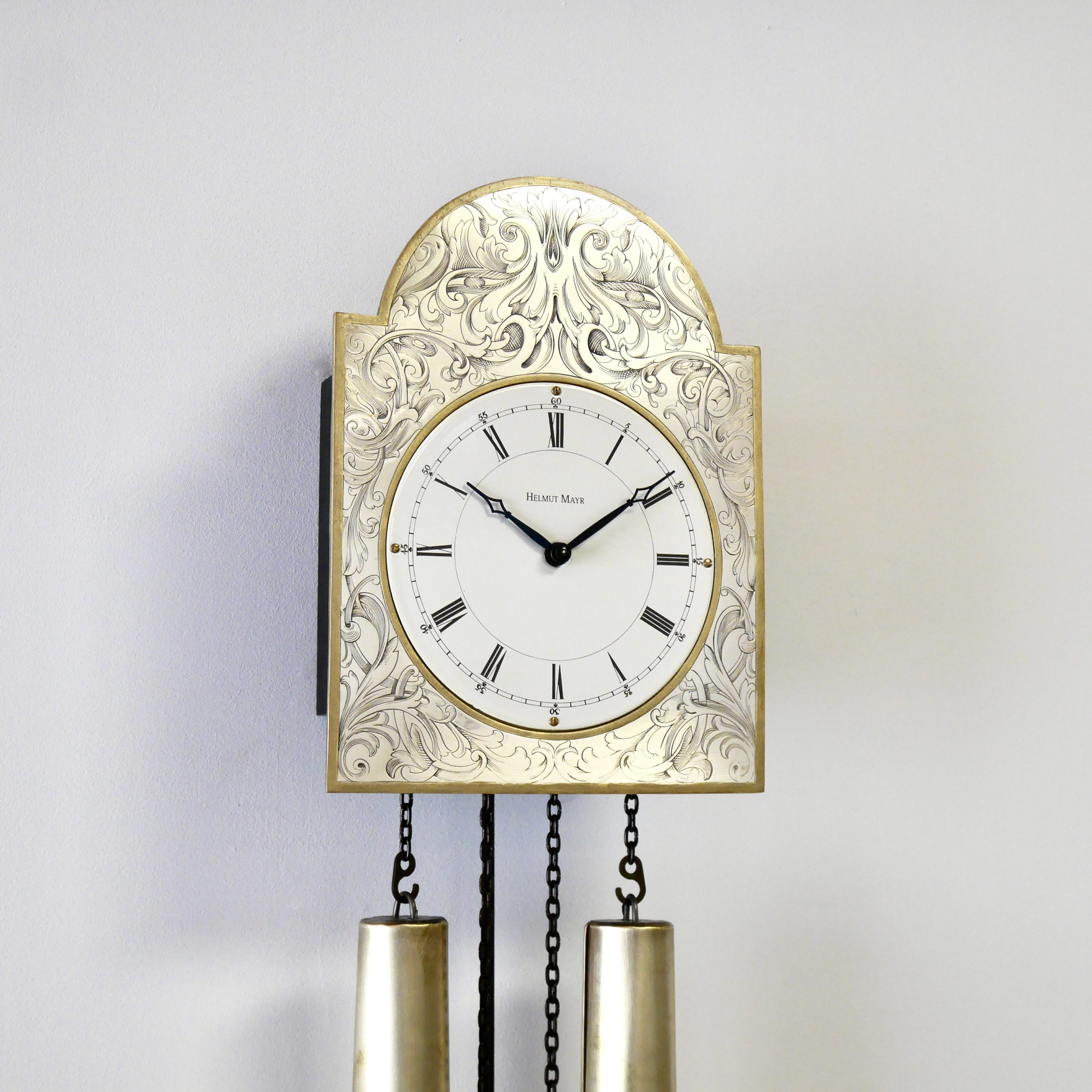 Die Schilderuhr 1160 (Silber) von Helmut Mayr ist mit einem äußerst zuverlässigen und präzisen mechanischen Kettenzugwerk ausgestattet. Der dezente aber doch volle 1/2-h Schlag auf eine Tonfeder (schlägt zur halben Stunde einmal und zur vollen Stunde die Stundenzahl) ist selbstverständlich abstellbar.