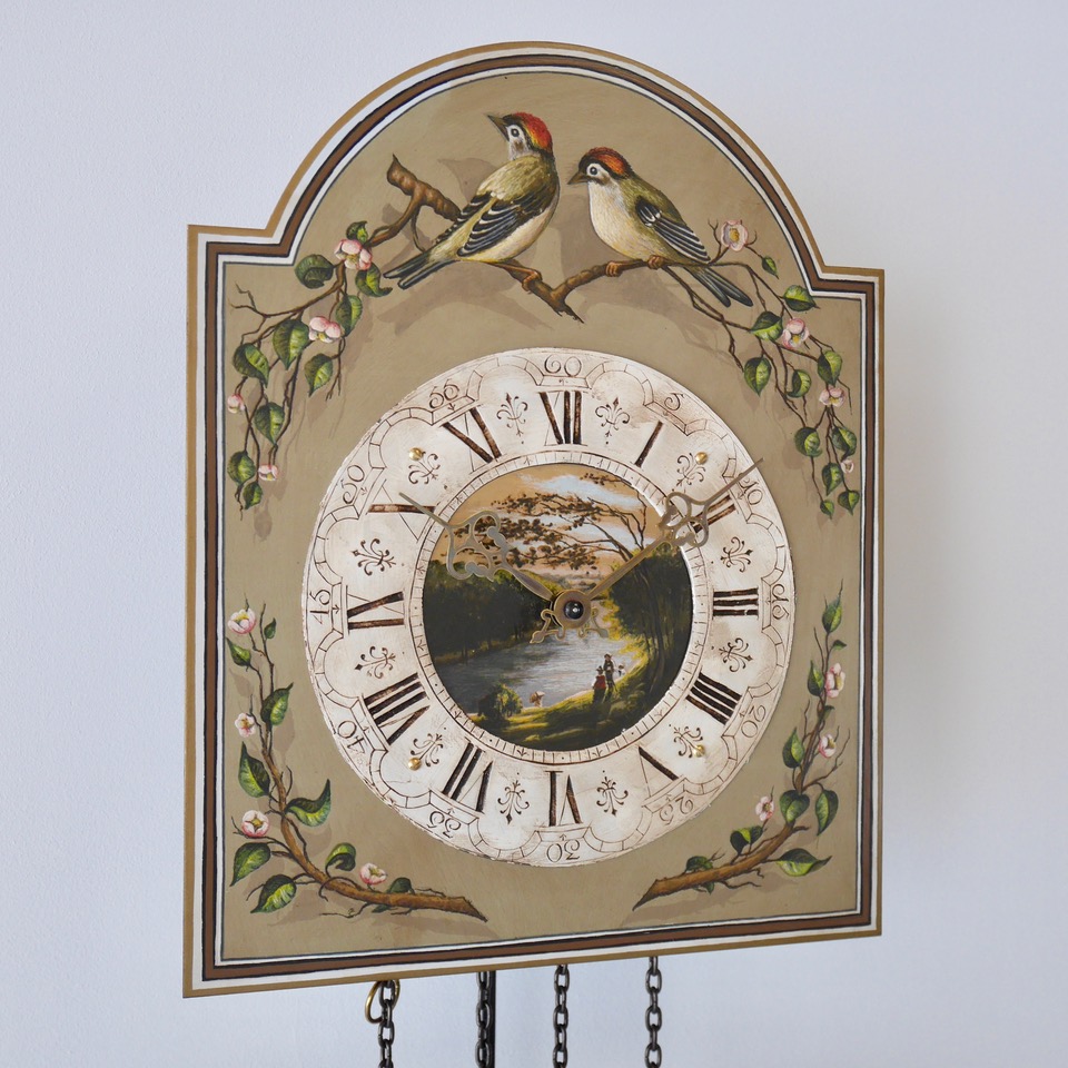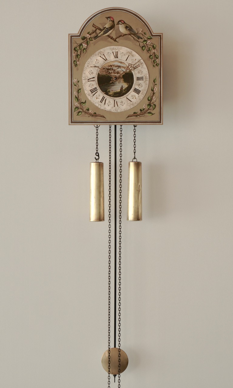 - Uhrwerk: 8-Tage Kettenzugwerk, Rundgong zur halben und vollen Stunde, Schlagabstellung