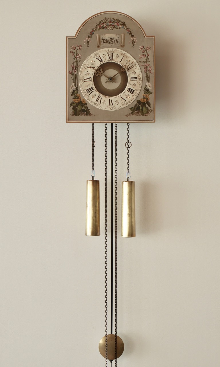 - Uhrwerk: 8-Tage Kettenzugwerk, Rundgong zur halben und vollen Stunde, Schlagabstellung