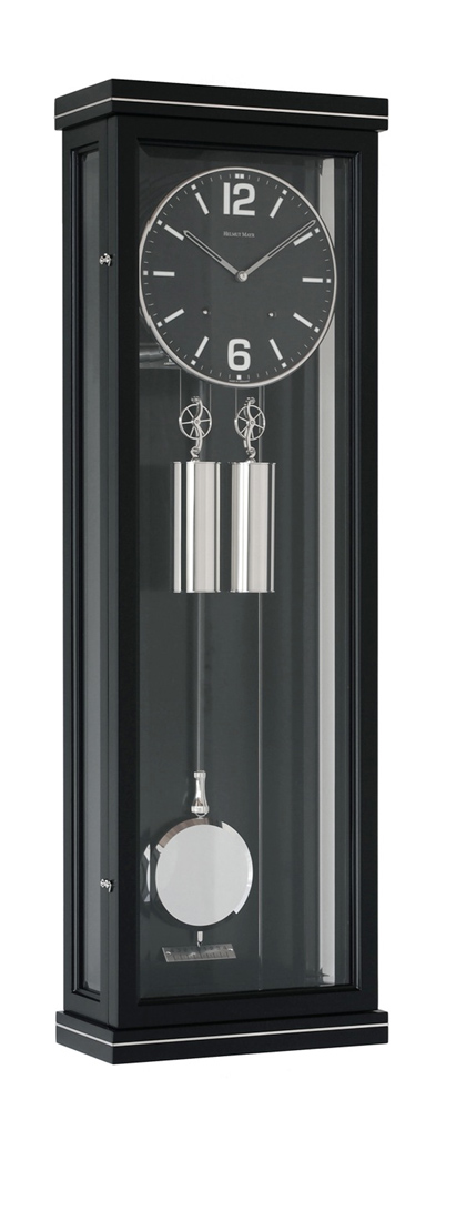 Wie alle HELMUT MAYR-Regulatoren besitzt auch diese Wanduhr handgefertigte Gewichte mit massiv gedrehten Deckeln und Böden und ein durchgehendes Kohlefaserstabpendel mit massiver, diamantgefräster Pendelscheibe.