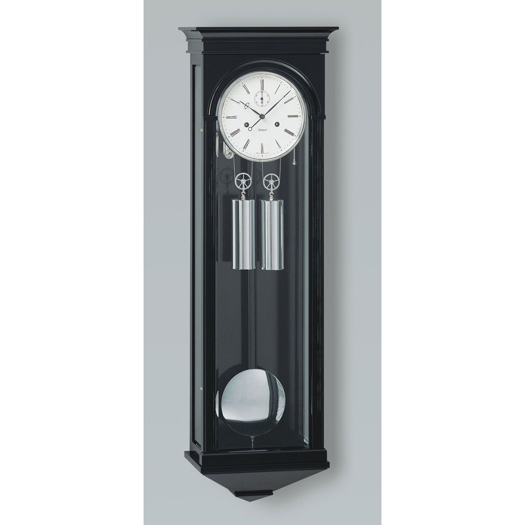 Der hier vorgestellte klassische Seilzugregulator 2512-96-03 der Marke Kieninger präsentiert sich in einem eleganten schwarzen Schleiflack-Design. Die facettierten Kristallgläser und das hochwertige Emaillezifferblatt mit einer Größe von 18 cm unterstreichen den exklusiven Charakter des Zeitmessers. Eine verchromte Garnitur verleiht dem Modell schließlich den letzten Schliff.
