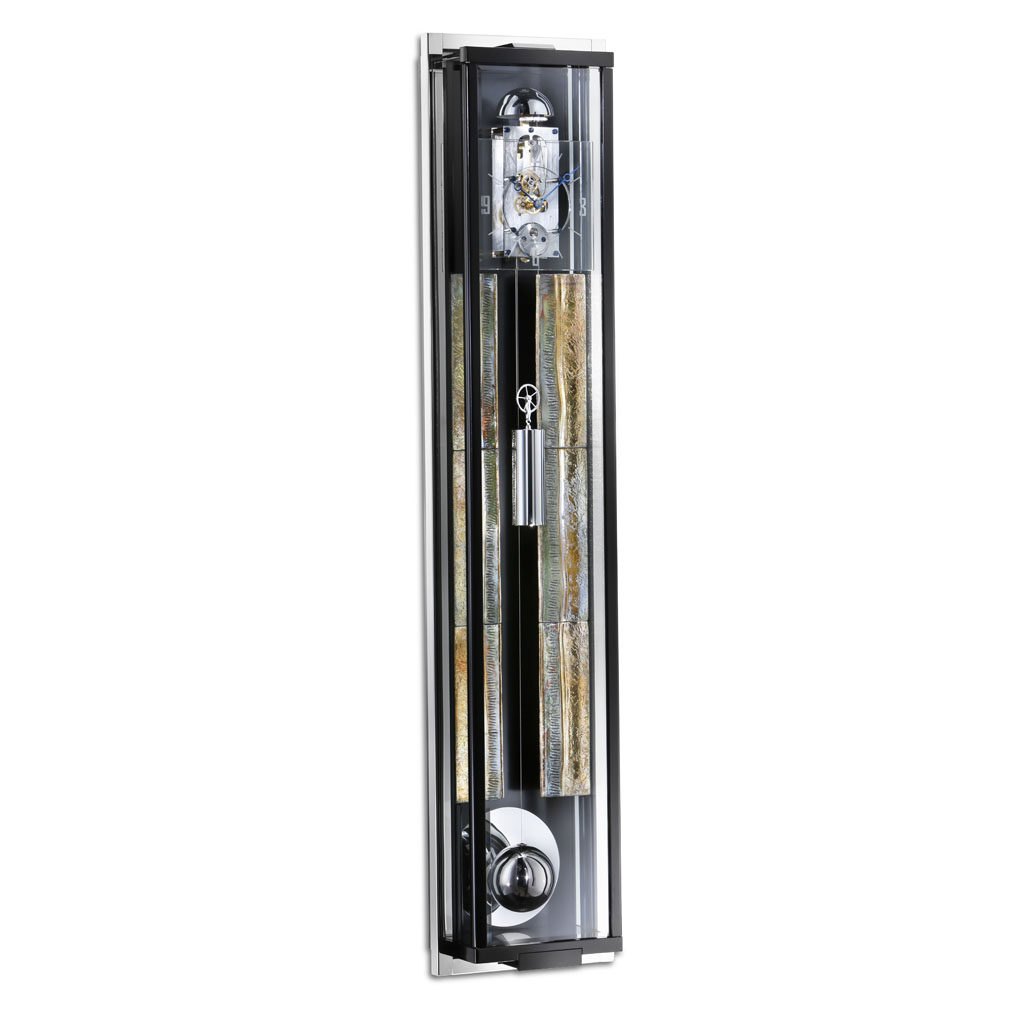 Die Wanduhr 2731-90-01 “Spherica” Kieninger besticht durch ihr außergewöhnliches Uhrendesign. Die ultraschlanke Design-Wanduhr präsentiert sich in einem eleganten schwarzen Schleiflack mit einem verchromten Metallrahmen und einer praktischen Schlüsselschublade. Die Dekorfinnen bestehen aus hochwertig handgefertigten Keramikelementen. Ein besonderes Highlight ist das einzigartige Kugelpendel, welches vor einem Hohlspiegel schwingt. Das Floatglas-Zifferblatt verleiht der Uhr ihren besonderen Charakter.